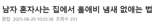 남자 혼자사는 집에서 홀애비 냄새 없애는 법